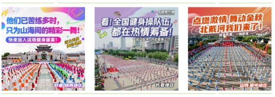 仅在今年8月,甘肃、陕西腾博会官网,长春地区腾博会官网,山西晋中腾博会官网等多地持续行动,精心部署,举办了数场健身操展演活动,直接参与人数达4000人,影响、带动了上万人参与到健康活动中来。