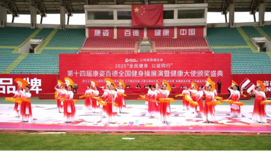 展演现场,整齐列队的健身操爱好者们同时舒展身姿,抬手、转身的动作如行云流水,既展现着健身操的科学韵律,更迸发着蓬勃的生命活力。